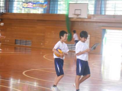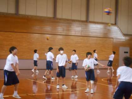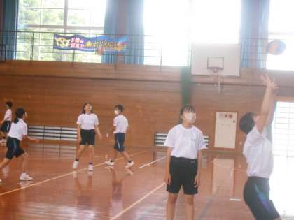 保健体育の授業では、バレーボールのアンダーハンドパスやオーバーハンドパスの様子をペアで撮影し合い、自分の課題を見つめ直しました。それぞれどんな課題が見つかったのでしょうか。