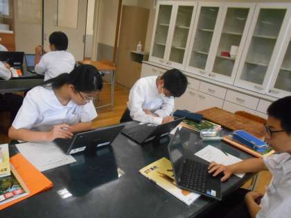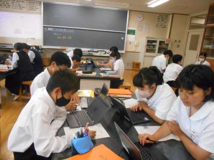 美術の授業では、色相、明度、彩度を工夫して、自分か決めた味を色で表現しました。面白い課題です。