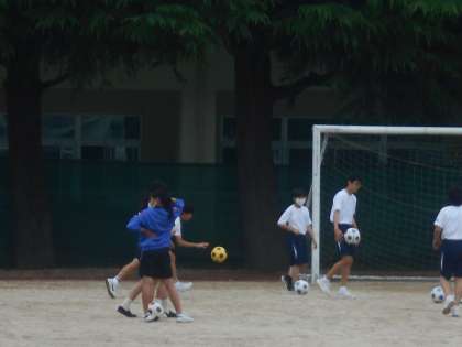 保健体育の授業では、サッカーに取り組みました。まずはボールさばきの技術の向上に向け、練習をしていました。