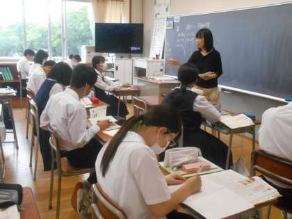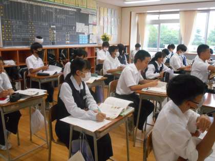 国語の授業では、次の定期評価に向けて範囲が伝えられました。見通しを持って学習に取り組みましょう。