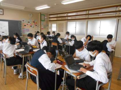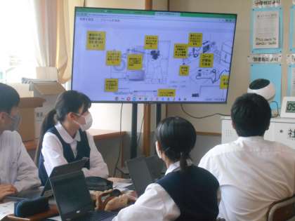 技術の授業では、電気製品の安全な使い方について考えており、Chromebookを使って各班の意見を見ることができました。
