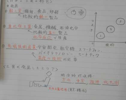 社会の授業では、日本の工業にはどのような特徴があるのか勉強しました。大きな分類としては、軽工業、重化学工業、先端技術工業に分けられるようです。