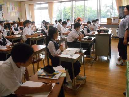 国語の授業では、「クマゼミ増加の原因を探る」という教材を読み、文章構成を捉え僂ことに取り組みました。文章を書くこつにも気付くことができたと思います。