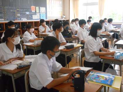 保健体育の授業は保健分野でした。適切な休養と睡眠について考えており、普段の生活を振り返る機会になりました。