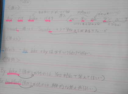 英語の授業では、「普段していることを尋ねたり、伝えたりしよう」という学習課題で取り組みました。また、分かりやすくコメントを付けて、学習したことをノートにまとめている人もおり感心しました。