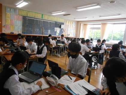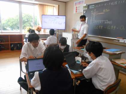 理科の授業では、データ処理のしかたをエクセルを使って勉強しました。Chromebookを使い、自分の班以外のデータも同時に見ることができていました。