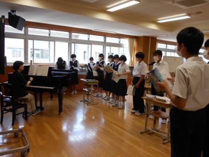 音楽の授業は合唱練習でした。まずは音程をしっかりとることが大切です。歌うことを楽しみましょう。