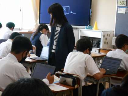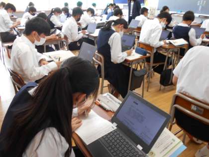 国語の授業では、説得力のある構成になるように、Chromebookで情報を集め、ワークシートにメモしました。