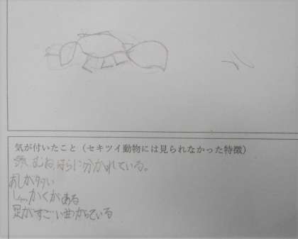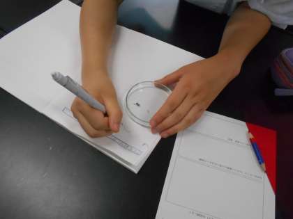 理科の授業では、アリを観察し、自分の体のつくりとの違いを見付けました。言葉にすると改めていろいろなことが分かりました。