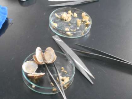 理科の授業では、骨のない動物のつくりについて勉強したクラスもありました。貝を観察して、どんなことが分かったのでしょうか。