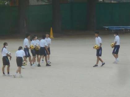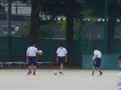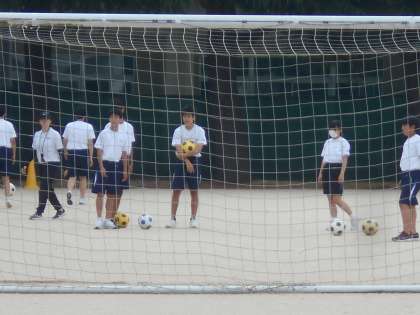 保健体育はサッカーの授業でした。シュート練習、ドリブル練習。グループ内でアドバイスしながら進めていました。