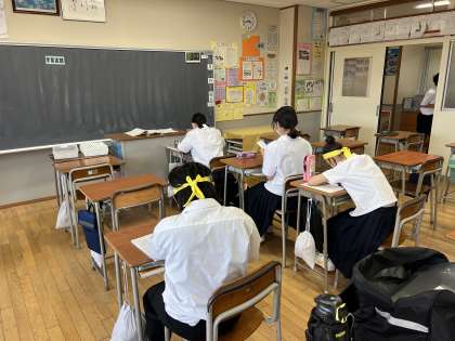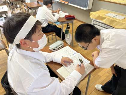 期末評価に向けて「団別寺子屋」が行われています。写真は昨日の様子ですが、運動会で培った団結力を生かして、学習に励んでいました。はちまきをすることで、より気合いが入りますね。