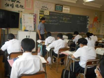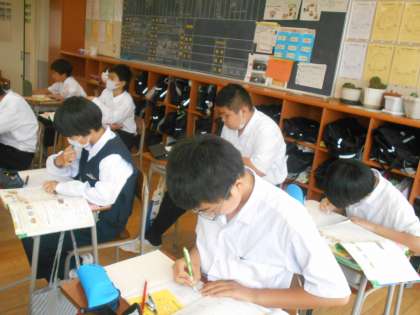 英語の授業では、場所や時間を尋ねたり、答えたりする練習をしました。場面を想像しながら、どんどん使ってみましょう。