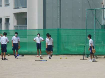 保健体育の授業では、ソフトボールに取り組み、今日は男女に分かれてグループを作り活動しました。