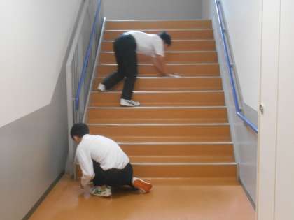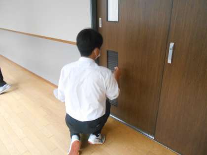 校長室の扉のほこりを丁寧に取ってくれました。廊下や階段では雑巾がけを丁寧にする姿がありました。週3回の清掃活動ですが、生徒のみなさんの力で美しい校舎が保たれています。これからもよろしくお願いします。