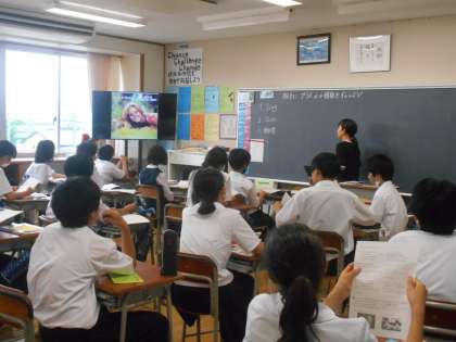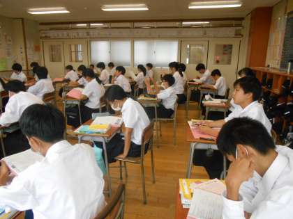 英語の授業では、毎回「Sing」を帯学習として続けています。7月の曲は「Take me home, Country Roads」のようです。メロディは耳慣れている人も多いと思いますが、英語になるとどのような言葉になるのか、食い入るようにワークシートを見ていました。
