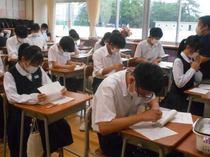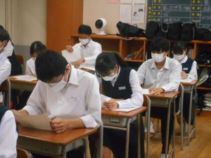社会の授業もテストの見直しでした。間違った問題は見直しノート等を作り、次のテスト前に確認しやすいようにしておきましょう。