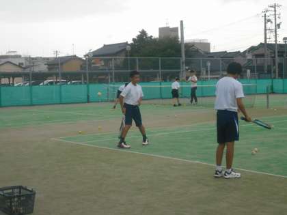 ソフトテニス部は1年生は校舎内でのトレーニング、市民体育大会出場者はコートで練習しました。