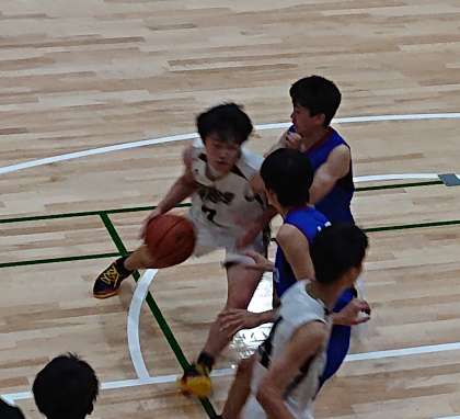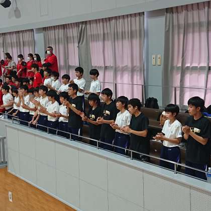 男子は、昨日3戦勝ち上がり、今日、ベスト4をかけて速星中学校と対戦しました。途中見事な追い上げで同点になりましたが、残念ながら40-54で敗戦となりました。しかし、ここまで勝ち上がったこと、そして素晴らしい応援は心に残りました。たくさんの応援ありがとうございました。