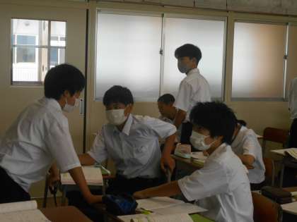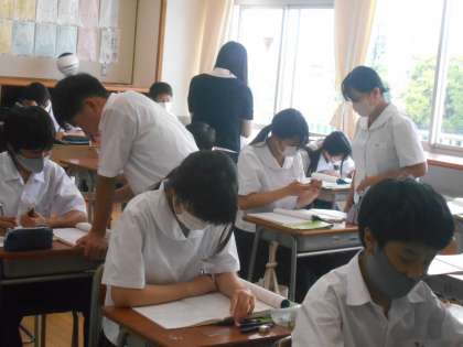 数学の授業では、いろいろな数量を文字で表すことに取り組んでおあり、あちこちで意見交換する様子が見られました。