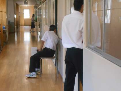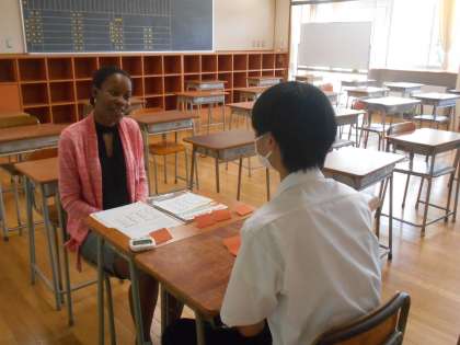 英語の授業では、ALTの先生との1対1のパフォーマンステストがありました。くじを引いてその場で話題を決めていました。みんなどきどきしながら順番を待っていました。