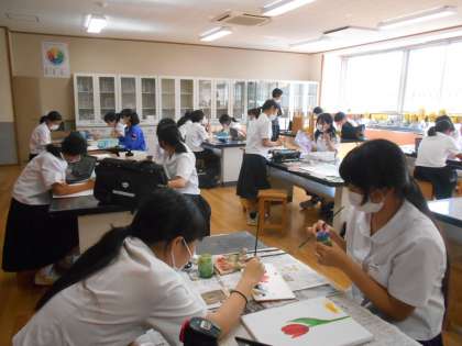 文化部は、文化活動発表会まで3年生も活動します。今は作品づくりで大忙しです。
