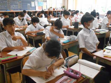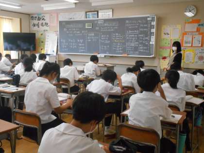 数学の授業では、いろいろな数量を文字で表す練習をしていました。先生からは、aキロメートルとbメートル、cセンチメートルの和をどう表すかという特別問題も出ていました。