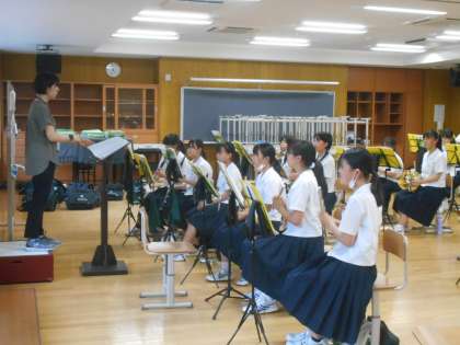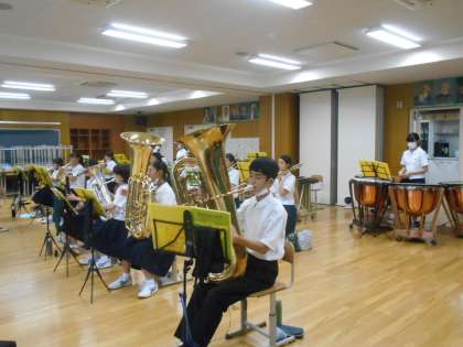 吹奏楽部は、7月16日開催されるコンクールに向けて、合奏練習を進めています。指揮をしっかり見ながら、心を一つにして曲を仕上げてほしいと思います。頑張れ、吹奏楽部!