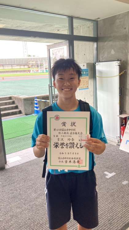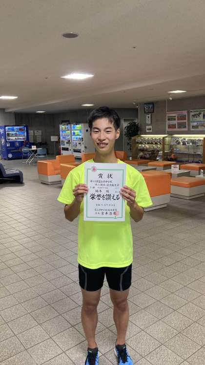3年楠本くんは全国中学校体育大会出場標準記録を突破し、全国大会への出場を決めました。