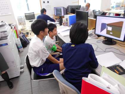 パソコン画面上で製図の作業をしていました。指導ボランティアの方によると、挨拶もしっかりしており、頑張っているとのことでした。