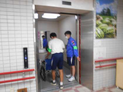利用者さんがお風呂に行く移動のお手伝いをしていました。指導ボランティアの方の作業にならって活動している様子でした。