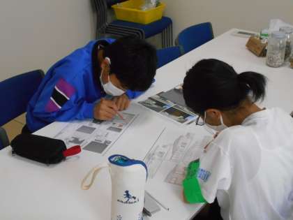 「グリーングローブ」での活動でした。午前は庭の清掃をし、午後はグリーングローブで設計・施工した建物の設計図に色を付けていました。生徒たちは、細かい作業に集中して取り組んでいました。