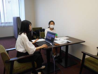 会社の業務内容について説明を受けていました。指導ボランティアの方のお話に返事をしたり、繰り返したりしんがら聞く姿に、「真面目にしっかりと話を聞いてくれています。」とお褒めの言葉をいただきました。