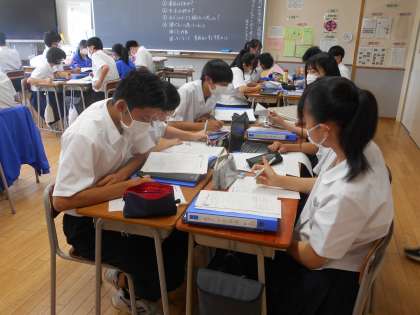 今日の総合的な学習では、卒業研究の中間発表会を行いました。ここまでに調べてきたことや、自分が考えていること、今後の課題について発表しました。友達の発表を聞いたりアドバイスをし合ったりすることで、新たな発見や気付きもあったようです。