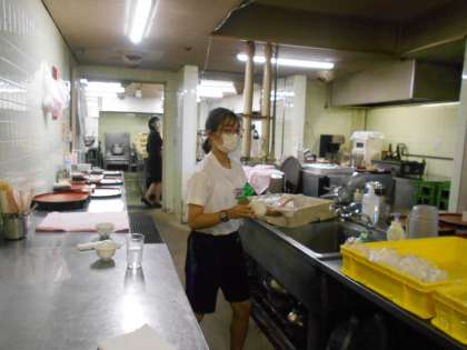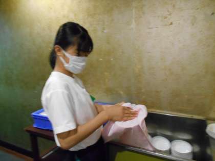 ホテルレストランの従業員の方と同じ緊張感のある表情で、レストランの配膳や食器洗い等の仕事を頑張っていました。生徒たちからは、「周りを見て行動することを教わり、自ら仕事を見つけることが大事だと分かった。」「自分が泊まるときとは違うホテルの現場が見られてよかった。」「残食を下げる作業をしたので、自分は残さずきれいに食べようと思った。」などの感想が聞かれました。