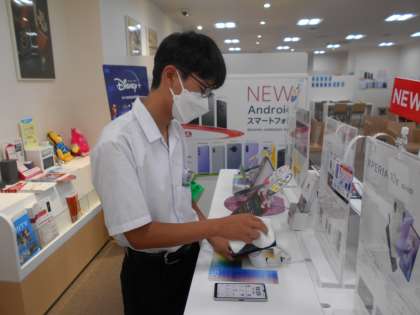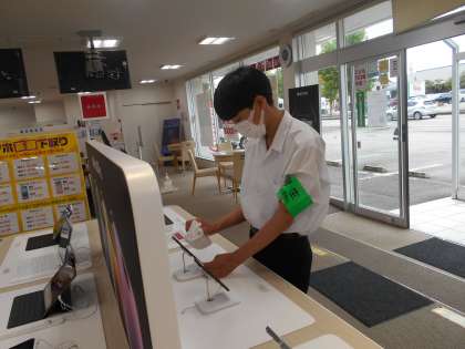 商品の拭き上げをしていました。生徒からは、「接客は緊張して難しいですが、楽しいし面白いです。」「普段高価なものを触る機会がないので、商品の扱いにドキドキします。」との感想が聞けました。指導ボランティアの方からは、「毎朝、元気な声で挨拶してくれていて、作業にも真面目に黙々と取り組んでくれています。」とお褒めの言葉をいただきました。