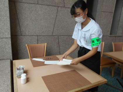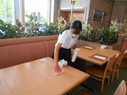 食器を下げ、仕分けたり、グラスを拭き上げたりしていました。お客様から声をかけられた際には笑顔で応対していました。自分から仕事を見付けて取り組んでいる様子が見られました。