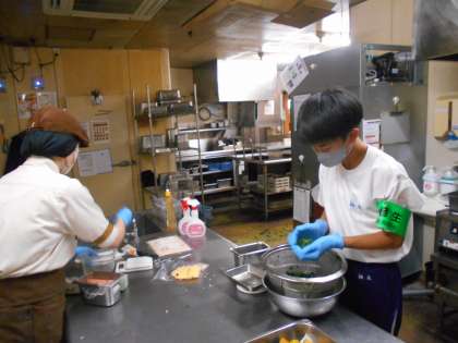 フルーツを切ったり、野菜の重さを量ったりして仕込み作業をしていました。生徒たちは、「皿洗い等、大変な作業もあったけれど勉強になり、一週間を通してとても楽しかった。」と感想を聞かせてくれました。