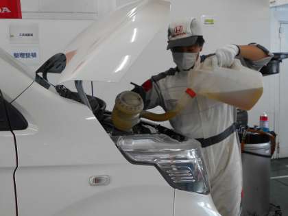 キッズルームの清掃、受付業務、車の整備やオイル交換を体験しました。指導ボランティアの方が、「生徒たちは、黙々と一生懸命取り組んでくれてます。」と教えてくださいました。