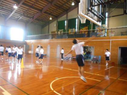 保健体育の授業では、バスケットボールに取り組んでいます。今日はドリブルからのシュート練習でした。練習あるのみです。頑張ってください。