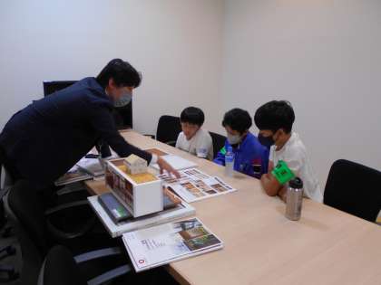 指導ボランティアの方のお話をしっかり聞いたり、実際のモデルハウスを見学したりしていました。モデルハウス見学では、住み心地の良い家を楽しみながらも、内装や設備について、たくさん質問して家について学んでいました。