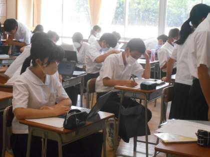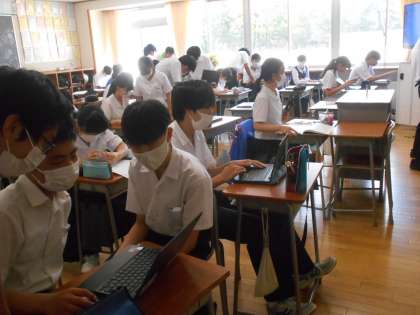 3年生の学活では、スポーツテストの入力もありました。昨年と比べてどうだったでしょう。