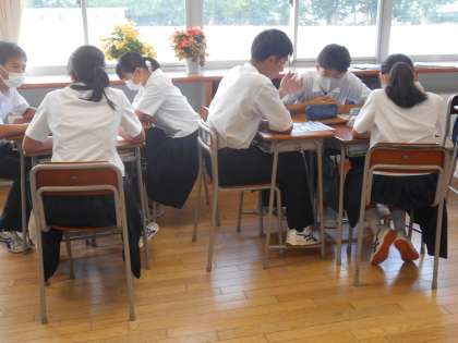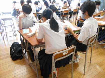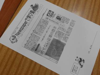今日のNewspaperで学び愛の新聞記事は、「消せない言葉の恐ろしさ」。顔を寄せ合うように新聞記事に見入っている班もありました。