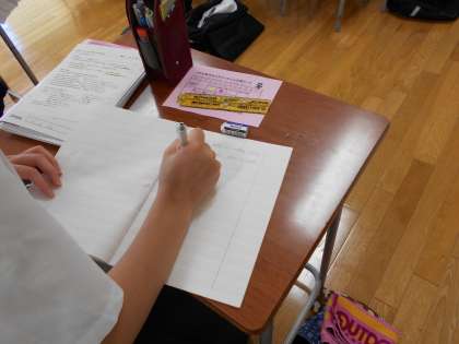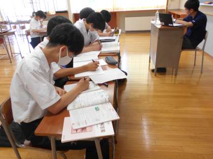 夏休み2日目のスタディタイムは、「英語何でも質問」の時間でした。テキストや自主学習ノートを活用しながら、丁寧に学習を進めていました。