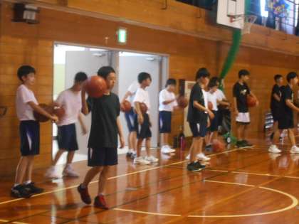 午後からの男子バスケットボール部の様子です。蒸し暑い中での練習でしたが、部員は集中力を切らさず、取り組んでいました。