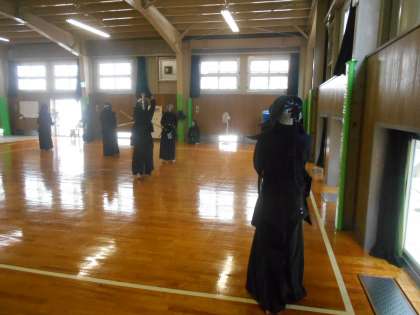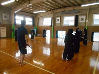 剣道部は胴着を着ての練習です。早い時間から練習をすることで、少しでも暑さ対策になっています。