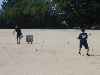 ソフトボール部は、人数が少ないときはマンツーマンでの練習です。みっちり教えてもらうことができました。