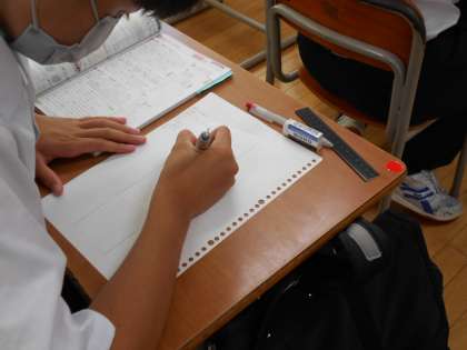 今日のスタディタイムは、「理科何でも質問」でした。地震の震源や重力など、1年生の学習内容からの質問もあり、これまでの学習内容の復習をしっかり進めているようすが伝わってきました。