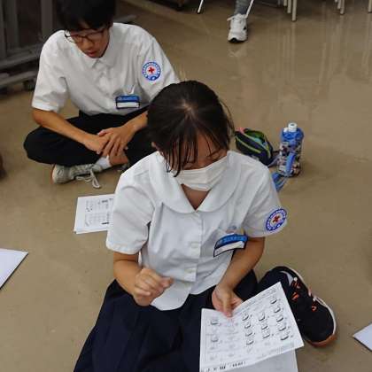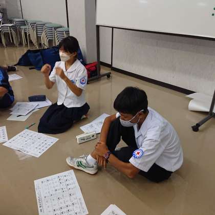 この研修は2日間にわたるもので、今日は、赤十字の活動を知るとともに、「心肺蘇生法とAED」また「手話」について学びました。