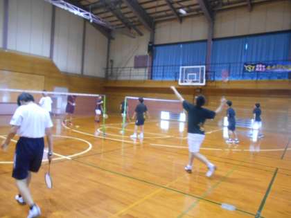バドミントン部は、ステップの練習等、基本練習からのスタートでした。基本を大切に、技術の向上を目指しましょう。